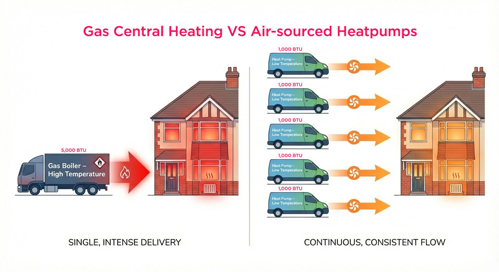 Gas Boilers vs Heat Pumps: One Big Delivery vs Many Small Ones