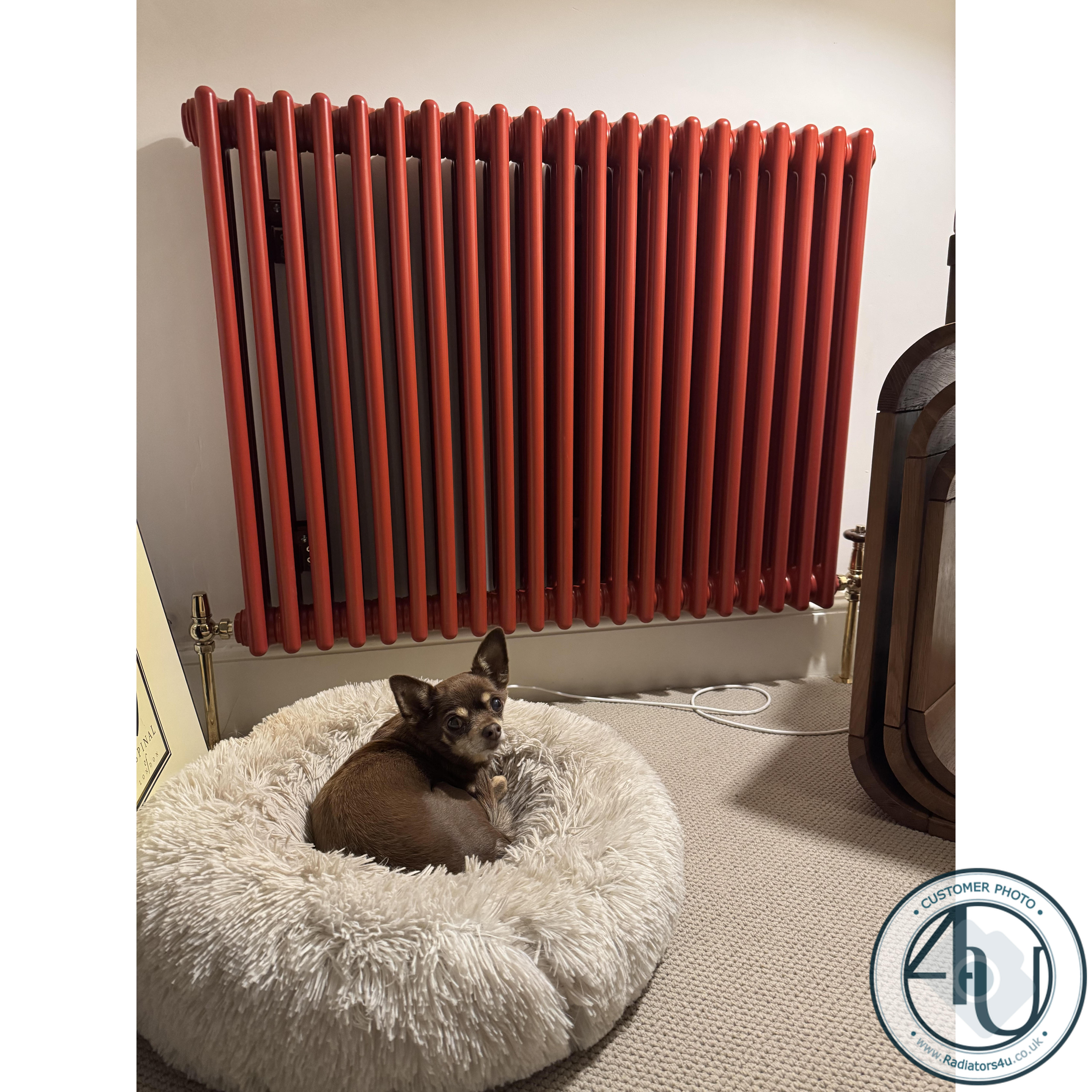Nikki Hodgson for her stunning Tomato Red Column Radiator, with her stunning pooch.