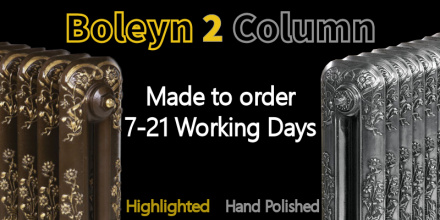 The Boleyn Cast Iron Radiator is available in two heights: 590 mm is the first with a taller version at 790 mm. Both heights are available with between 3 and 30 sections which means you can build a version to suit your exacting needs, anything from 247 to 2164 mm in width. The Boleyn Cast Iron Radiator deserves a finish to match its sophisticated detail and a Farrow & Ball Paint finish looks superb on it, as does a highlighted finish to further accentuate the pretty detailing of the flowers and swirls.