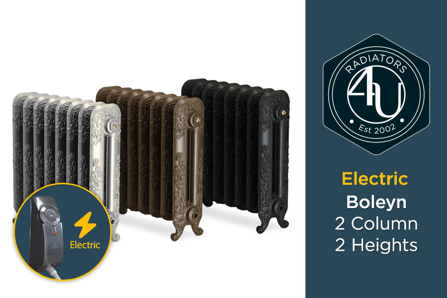 CI-BO590-09-EL Height: 590mm 590mm 678mm 2,591 BTU 10 Yr Primer Finish 2 Col 7-21 Days Cast Iron Radiators 4u Boleyn 2 Column Electric Cast Iron Radiator H590mm x W678mm Price: £909.06 Free Shipping Pick Options
