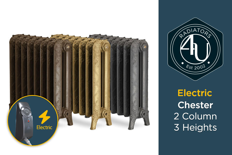 CI-CH460-12-EL Height: 460mm 460mm 892mm 2,896 BTU 10 Yr Primer Finish 2 Col 7-21 Days Cast Iron Radiators 4u Chester 2 Column Electric Cast Iron Radiator H460mm x W892mm Price: £1,258.56 Free Shipping Pick Options